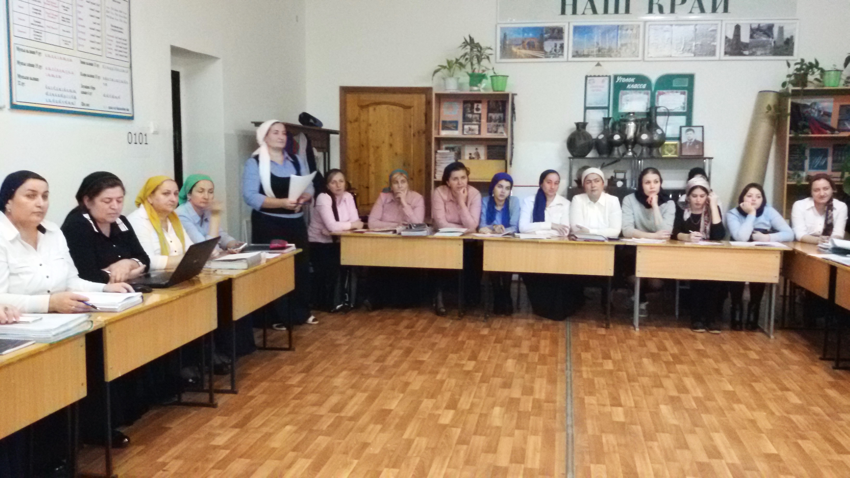 С темой «Проектирование современного урока в основной школе в условиях реализации ФГОС НОО» из опыта работы выступила учитель математики Абаева Зарема Саидовна. Она подчеркнула, что ученик из присутствующего и пассивно исполняющего указания учителя на уроке традиционного типа теперь становится главным деятелем. «Нужно, чтобы дети, по возможности, учились самостоятельно работать, а учитель руководил этим самостоятельным процессом и давал для него материал».