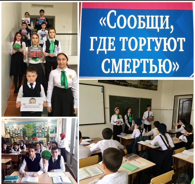 23.11.2019С 11 по 22 ноября 2019г. МБОУ "Гимназия N10 с.п. Знаменское" приняла активное участие в антинаркотической акции "Сообщи, где торгуют смертью". В рамках акции были организованы встречи с сотрудниками полиции и представителями духовенства, с целью профилактики наркомании и пропаганды здорового образа жизни. Активисты ЕДЮО "Юные Кадыровцы" распространили буклеты по данной теме.