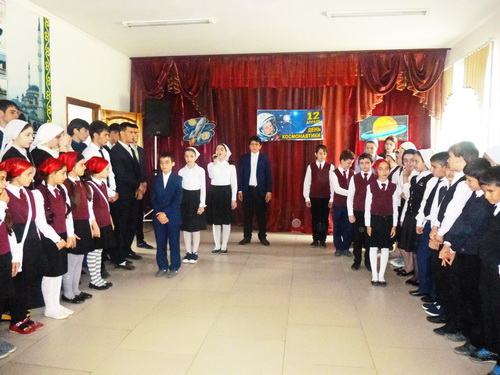В МБОУ «Гимназия №10 с.п. Знаменское" прошла торжественная линейка, посвященная 55-летию со дня первого полета человека в космос.