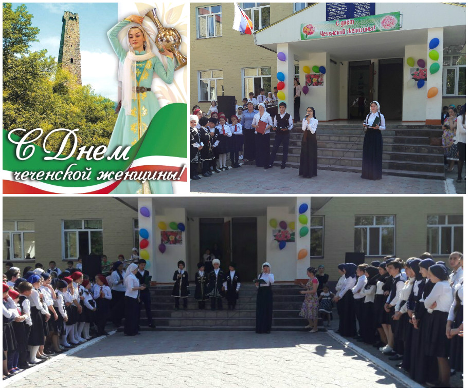 .Здесьбыли представлены интересные выборки из журналов «Нана», «Орга», «Вайнах», «Стела1ад» и газет, в которых главное место занимали материалы о женщине-матери, об уважении и любви к ней. На классных часах обучающиеся знакомились с историей праздника. В конкурсе рисунков, стенгазет, посвященных Дню чеченской женщины, победителями стали обучающиеся 5-Б, 6-А, 6-В классов. Согласно плану воспитательной работы МБОУ «Гимназия №10 с.п.Знаменское», торжественное общешкольное мероприятие, посвященное Дню чеченской женщины, проведено 19 сентября. В честь торжества фасад гимназии был красочно оформлен баннером и цветными шарами, вестибюль украшали яркие стенгазеты и рисунки учащихся 5-11 классов. На праздничное мероприятие были приглашены имам мечети с.п.Знаменское Берсаев К.С., старший специалист УО Надтеречного муниципального района Кривицкая О.В., а также родители обучающихся. В своем выступлении директор гимназии Султаханов И.Ц. поздравил всех женщин с праздником и сказал, что праздник День чеченской женщины призван подчеркнуть высочайшую роль чеченской женщины в сохранении культуры и традиций нашего народа. Имам мечети с.п.Знаменское Берсаев К.С. очень интересно рассказал о роли женщины в духовно- нравственном воспитании детей, а в заключении призвал всех присутствующих ценить и уважать своих матерей. В ходе праздничной программы звучали слова поздравления в адрес всех женщин Чеченской Республики.Песенный репертуар был замечательно подобран педагогом ДО Мальцаговой Х.С. Особенно яркими, интересными номерами стали выступления учащихся 8-11 классов: дуэт Загаева Дени и Астамирова Хусейна с песней «Нохчийн йо1», песня «Деза де» в исполнении Манцаевой Зухры. В конце торжественного мероприятия выпускники 11 класса всем присутствующим женщинам подарили розы. Подобные мероприятия способствуют развитию духовных ориентиров, воспитывают в каждом ученике уважение ко всем женщинам.