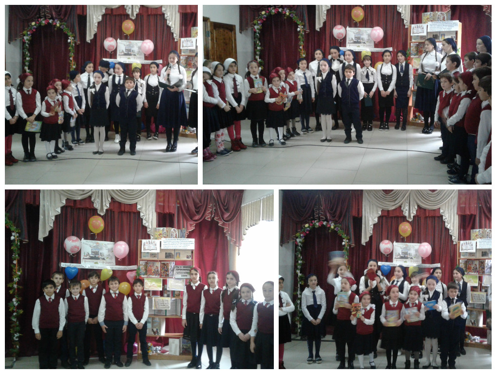 Открытие Недели началось с тематического оформления к Международному дню школьных библиотек. В фойе гимназии заведующим библиотекой Хаджиевым М.Ш. была оформлена выставка «Международный день школьных библиотек». На ней была представлена информация о писателях – юбилярах, как русских, так и чеченцев, план проведения мероприятий, календарь знаменательных и памятных дат. Также заведующий библиотекой рассказал о значении и роли библиотеки в жизни человека, познакомил ребят с новинками художественной и справочной литературы, периодическими изданиями. В библиотеке была развернута выставка литературных новинок. Для учащихся первого класса была организована экскурсия по библиотеке. Первоклассники познакомились с понятиями читатель, библиотека,с фондом детских журналов, узнали о правилах поведения в библиотеке и правилах обращения с книгой. Для учащихся 2 – 4 классов проведен конкурс «Кто быстрее всех читает?» Обучающиеся 5-7 классов с удовольствием поучаствовали в викторине, посвященной творчеству детских писателей.