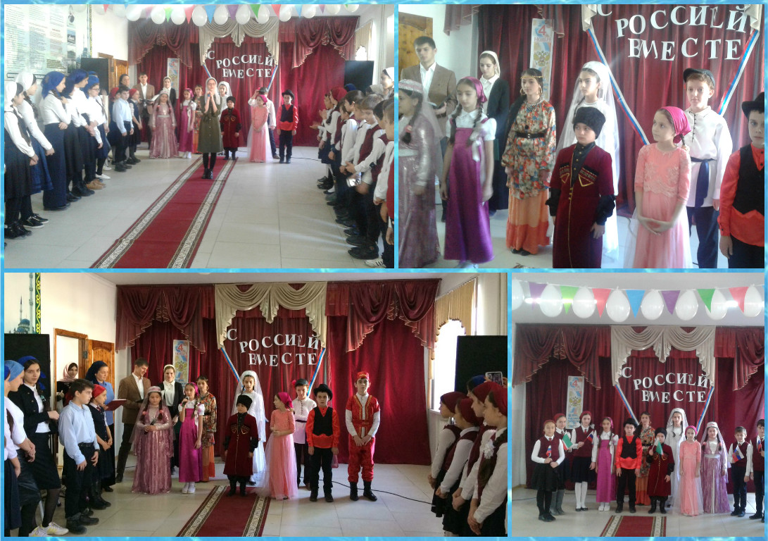 . В честь этого праздника3 ноября 2016 г. в гимназии была проведена торжественная линейка для обучающихся 2-11 классов под девизом «С Россией вместе навсегда!» Торжество началось с гимна РФ. Об истории праздника рассказали ведущие праздничной программы, учащиеся 11 класса Аргеноев Шаабан и Амаева Элиф Ясемин. В ходе линейки прозвучали стихи, песни о родине и дружбе. Особенно ярким моментом стало появление обучающихся 3-5 кл. в костюмах разных национальностей. В завершении своего выступления дети проскандировали: «Сохранить весь мир нам нужно, будем жить в единстве дружно!»