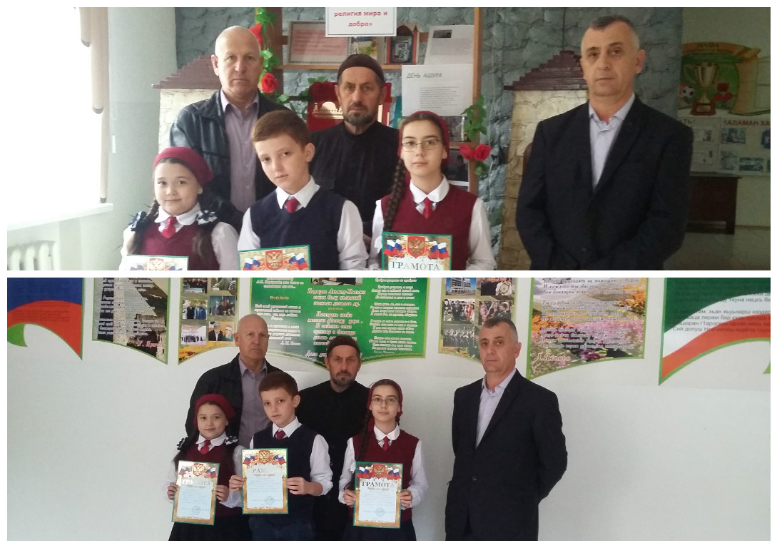 Знания школьников оценивало жюри в лице педагога по духовно-нравственному развитию и воспитанию Халида Имрановича Ахьядова, заместителя директора по воспитательной работе Мархи Салмановны Мальцаговой, представителя кадарийского тариката Сайд-Магомеда Хасмагомедовича Кадиева и учителя истории Султана Султановича Тимаева.