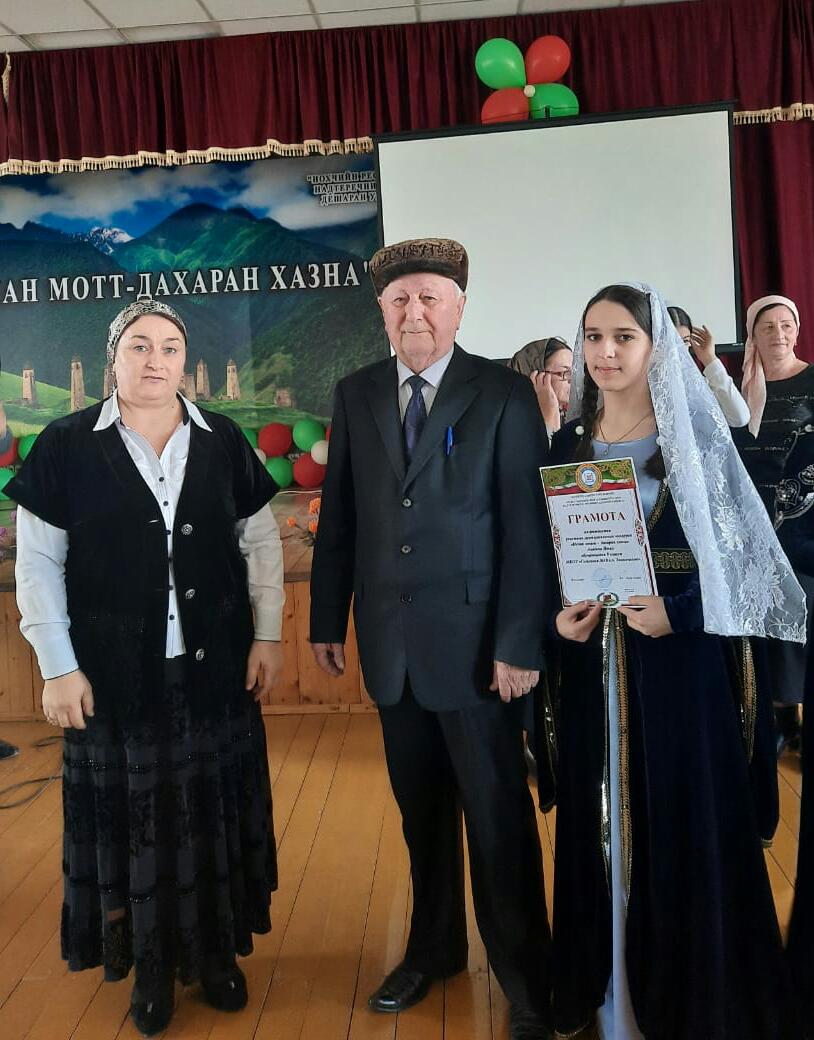 Ученица 9"В" класса Ахъядова Иман приняла участие в муниципальном конкурсе чтецов "Ненан мотт - дахаран хазна"