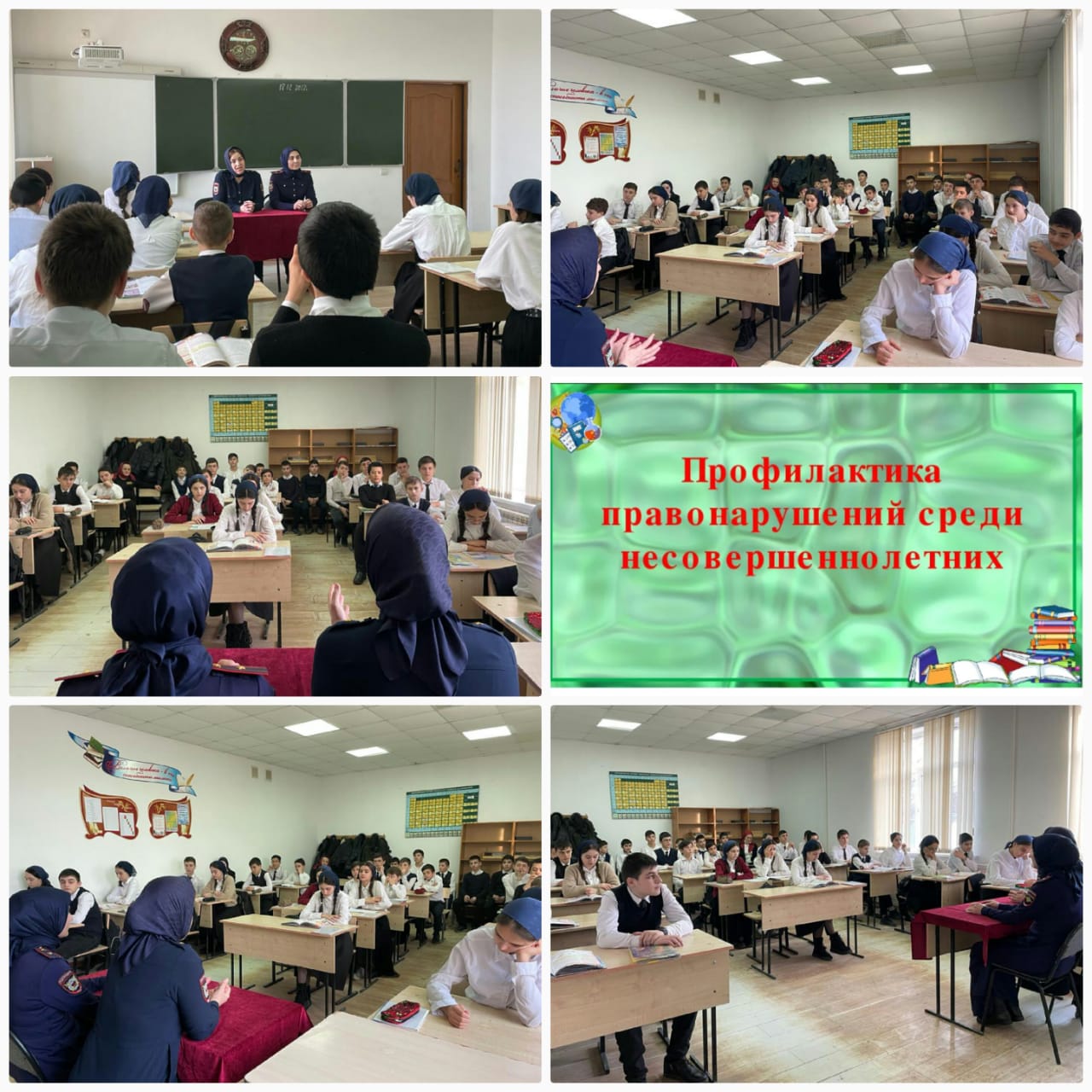 С профилактической беседой о недопустимости нарушений законодательства и ответственности несовершеннолетних выступили Хасуева М. А. и Мажидова З.И. Они затронули вопросы поведения учащихся в школе и общественных местах, уважительного и корректного отношения к учителям, взрослым и сверстникам, общение в социальных сетях.