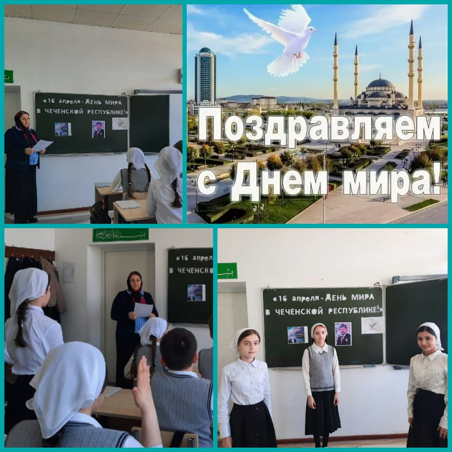 15.04.2022Кл.час ко Дню мира в 6-Б классе (кл.руководитель Шахмаева М.И.) 16 апреля в Чеченской Республике отмечается один из самых значимых праздников – День мира.Поздравляем всех с этим светлым и историческим днём в нашей республике! Искренне желаем мира, благополучия и здоровья!
