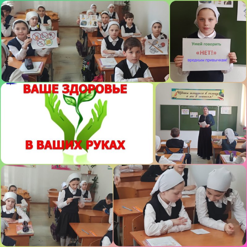 12.04.2022В 3-В классе классный руководитель Хажмурзаева З.Х. провела классный час «Опасность вредных привычек». В ходе мероприятия говорилось о вреде курения, газированных, энергетических и спиртных напитках, о влиянии нездорового образа жизни на семью и детей.