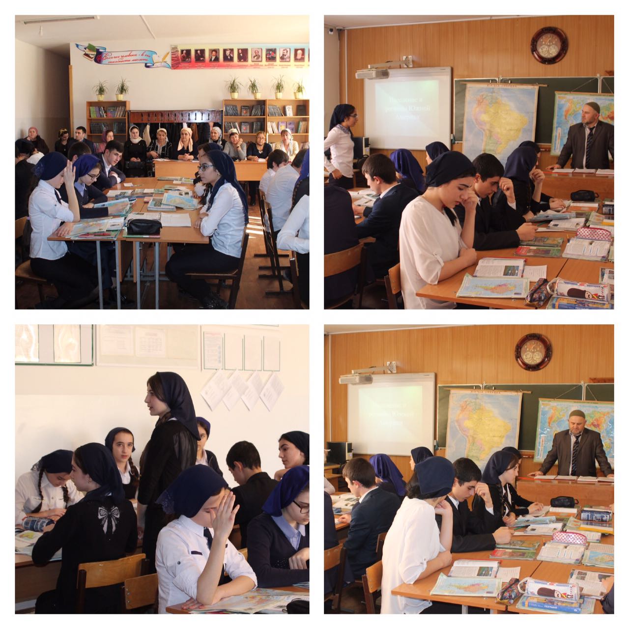 Учитель географии гимназии №10 Кадиев Сайд-Магомед Хасмагомедович в 7 «А» классе провел урок по теме «Население и страны Южной Америки».