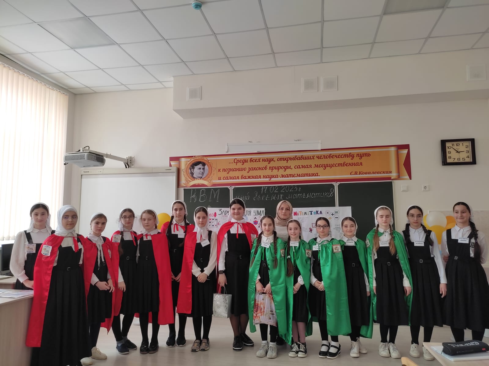 17.02.2023Учитель математики Умарова Х.М. провела математическую игру «КВМ» между учащимися 5б и 6а кл.Цель игры: развитие познавательной активности учащихся, формирование интереса к математике, развитие коллективизма. Задания игры были интересными, занимательными, особенный интерес вызывали логические задачки. Ребята были активны и находчивы.С перевесом в 2 балла победила команда учащихся 6а класса.В завершение встречи всех участников ждали сладкие призы.
