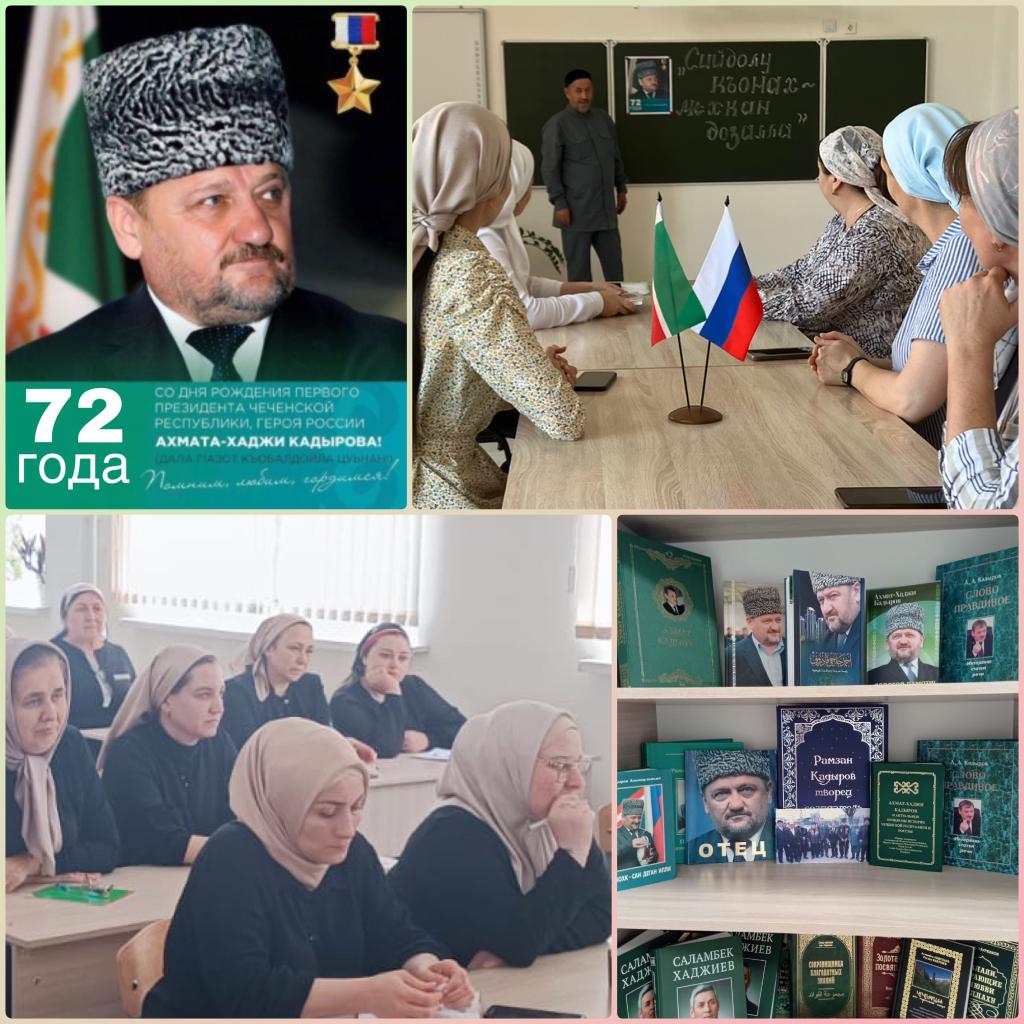 23.08.2023В рамках мероприятий, посвященных 72-й годовщине со дня рождения Первого Президента Чеченской Республики, Героя России Ахмата-Хаджи Кадырова, в нашей гимназии 23 августа 2023г. состоялось торжественное собрание.В мероприятии приняли участие педагоги и представитель кадарийского тариката Ахьядов И.М. В своем выступлении Имран Ахьядов отметил, что благодаря Ахмату-Хаджи Кадырову удалось отстоять целостность России, спасти республику от тотального уничтожения. «Достижения, которых мы добились под руководством Главы Чеченской Республики, Героя России Рамзана Ахматовича Кадырова, являются достойным продолжением курса Ахмата-Хаджи Кадырова, направленного на развитие и процветание Чеченской Республики. В этот день мы отдаем дань уважения великому сыну чеченского народа Ахмату-Хаджи Кадырову (Дала г1азот къобалдойла цуьнан), в наших сердцах всегда будут жить его добрые дела, которые служат примером для нас», - сказал он. Все участники торжественного мероприятия были едины во мнении, что необходимо бережно хранить память о человеке, который ценой собственной жизни спас свой народ, и воспитывать подрастающее поколение на примере жизненного пути Ахмата-Хаджи.