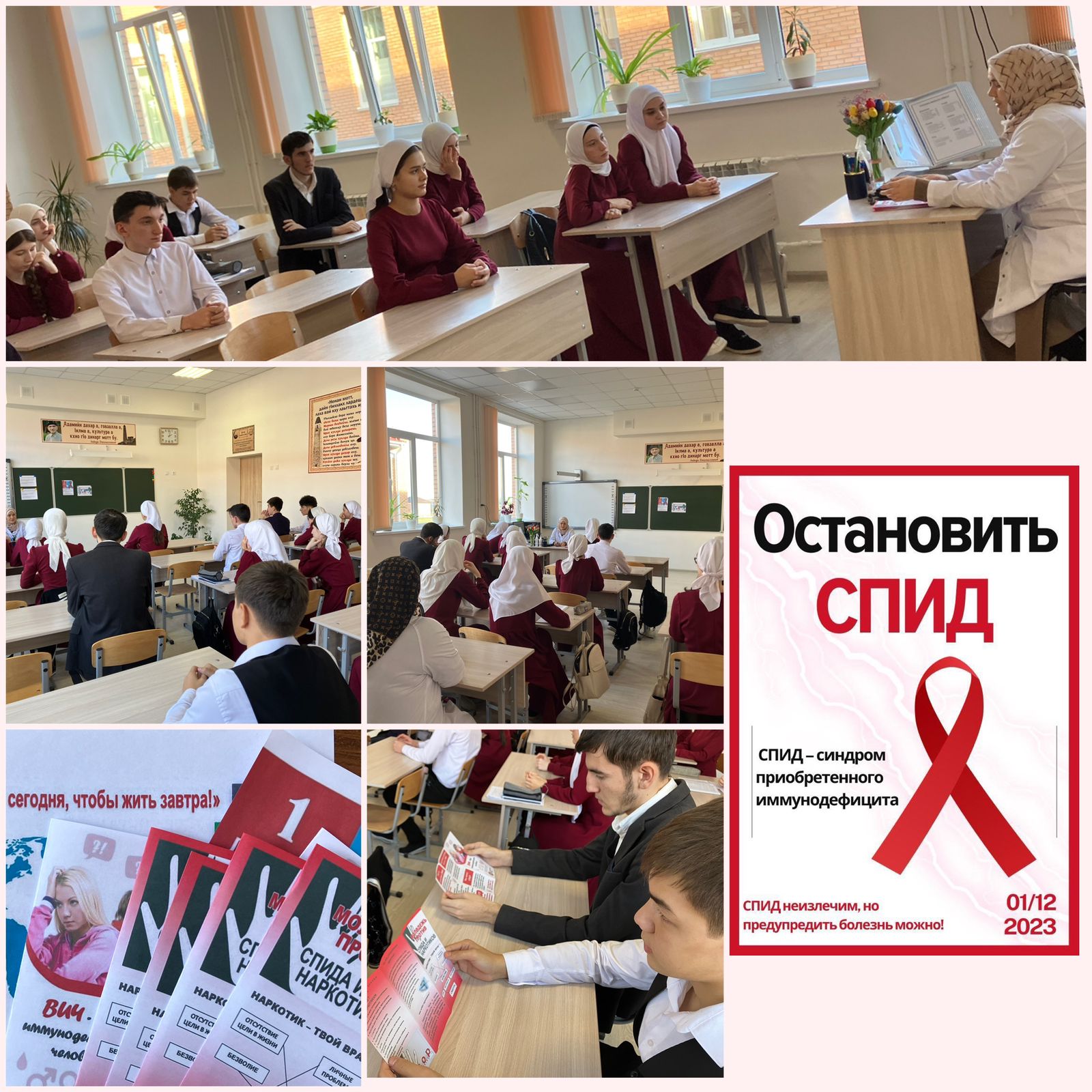 04.12.2023В рамках Всемирного дня борьбы со СПИДом, который ежегодно отмечается по всему миру 1 декабря, в нашей гимназии состоялась встреча обучающихся 8-9-х классов с врачом-педиатром НЦРБ Дзугаевой З.А. Зарета Ахмедовна в доступной форме рассказала ребятам о ВИЧ/СПИДе, каким путем может попасть смертельный вирус в организм человека и чего следует остерегаться в повседневной жизни. В ходе беседы было подчеркнуто, что люди, ведущие здоровый образ жизни и ответственные за свое поведение и здоровье, не заболевают спидом, что каждый молодой человек должен осознать необходимость активной заботы о своем здоровье и о здоровье других. Всем участникам встречи вручалась памятка «СПИД: знать, чтобы жить», содержащая важную информацию о смертельном вирусе, его признаках, путях передачи и профилактике. В завершении встречи Зарета Ахмедовна провела небольшую викторину-опрос по теме лекции.