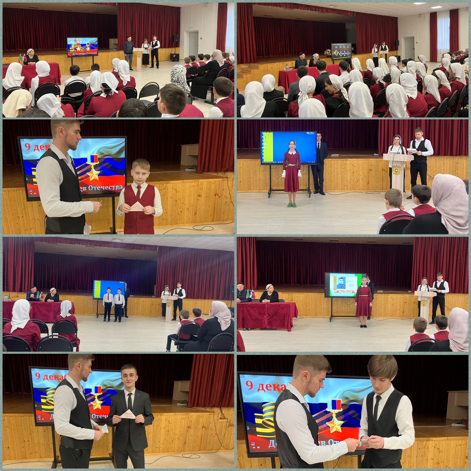 08.12.2023В целях укрепления духовных ценностей, сохранения памяти о героическом прошлом и настоящем России, 8 декабря в гимназии состоялось торжественное мероприятие, посвящённое Дню Героев Отечества. Это праздник настоящих Героев, тех, кто порой ценой собственной жизни боролся за наше счастливое будущее. Имена этих людей должен знать каждый, об их подвигах должны говорить, вспоминать и чтить. Участниками торжества стали обучающиеся 3б, 3в, 6а, 6б, 7-х и 11 кл. В ходе мероприятия обучающиеся познакомились с историей этого праздника, узнали имена Героев России. Вспомнили Героев России разных эпох и различных по званию, которых объединяло одно – великая любовь к своей родине и способность к её защите. 9 декабря - это и День героев современности, которые выполняя свой воинский долг перед Родиной, отдали жизни в борьбе с нацизмом во имя безопасности нашей Отчизны, и продолжают бороться за мирное небо над нашей Родиной. Честь, долг, любовь к Родине - главные качества героев России. Обо всем этом очень интересно рассказал учитель истории и обществознания Тимаев С.С. В своем выступлении он привел пример мужества и героизма при выполнении воинского долга на территории Украины выпускника нашей гимназии Юсупова Т., который награжден орденом Мужества посмертно. Султан Султанович призвал ребят любить Родину, быть патриотами своей страны и защищать её рубежи, когда придёт их время служить Отчизне. Вечная память геройски погибшим при выполнении воинского долга, всем, кто не дожил до сегодняшнего дня. Помня и чествуя Героев Отечества, мы не только отдаем им дань, но и воспитываем в себе и в наших детях гражданский дух, патриотизм, любовь к своей стране. Мы учимся быть сильными, смелыми и ответственными гражданами.