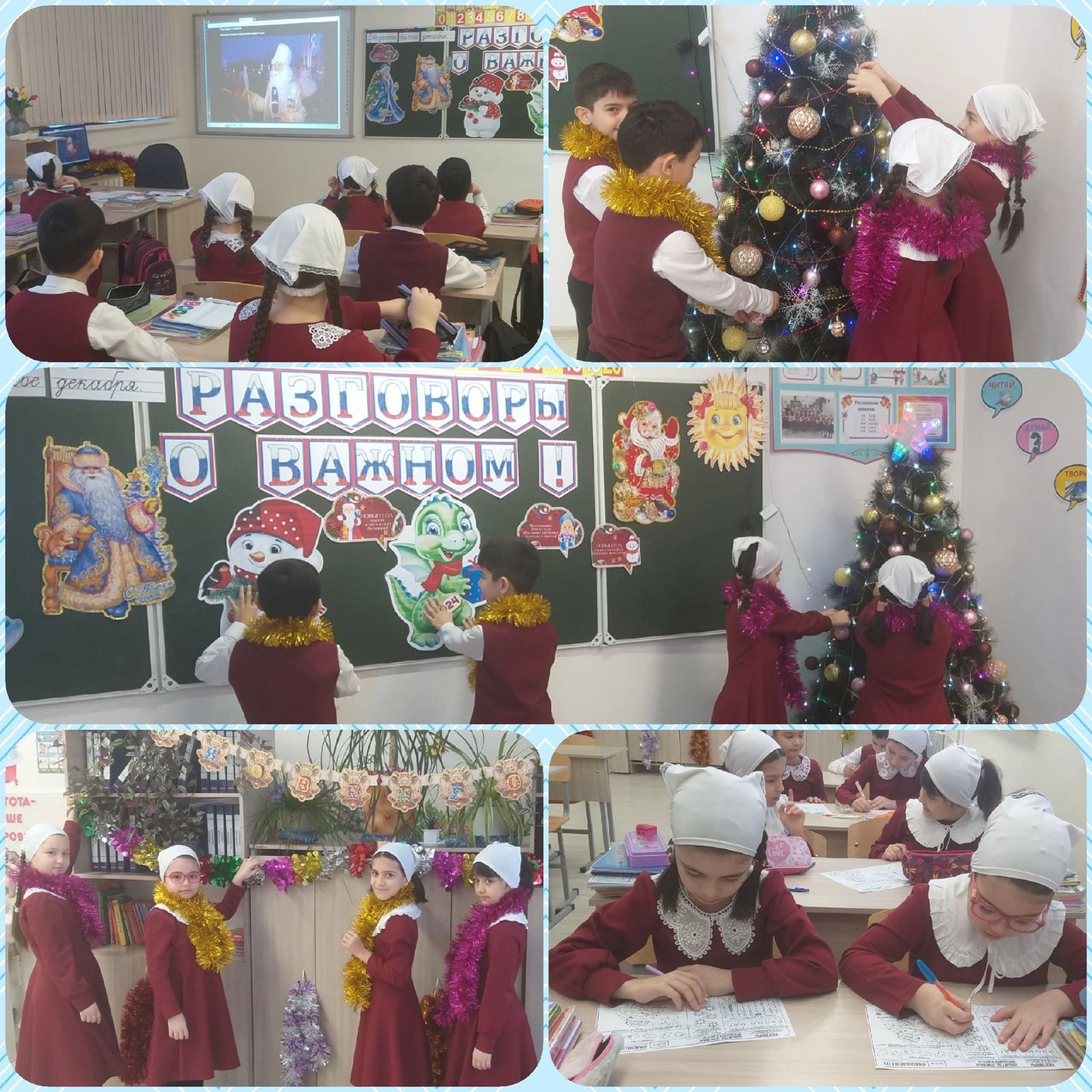 25.12.2023«Разговор о важном» был посвящен семейным традициям празднования Нового года. Учащиеся узнали, что у каждого народа России Дед Мороз называется по-разному. В Чеченской Республике Деда Мороза зовут Г1ура-Дада. Новый год связан для всех с атмосферой волшебства, с нарядной елкой, с подарками и добрыми пожеланиями. Будучи детьми, мы ждем этот праздник, потому что верим в чудеса, а став взрослыми, потому что можем сделать чудеса своими руками и подарить другим. Став взрослыми, мы начинаем больше ценить не подарки и веселье, а возможность разделить праздник с теми, кто нам дорог. И еще мы понимаем, что и елка, и подарки, и поздравления, и пожелания, и все, что связано с празднованием Нового года, – это наши традиции, которые объединяют людей и передаются от поколения к поколению. И встречать Новый год с самыми близкими людьми – это тоже традиция, недаром считается, что Новый год – семейный праздник. Мы поздравляем всех с наступающим Новым годом и желаем успехов, новых свершений и осуществления самых заветных желаний!