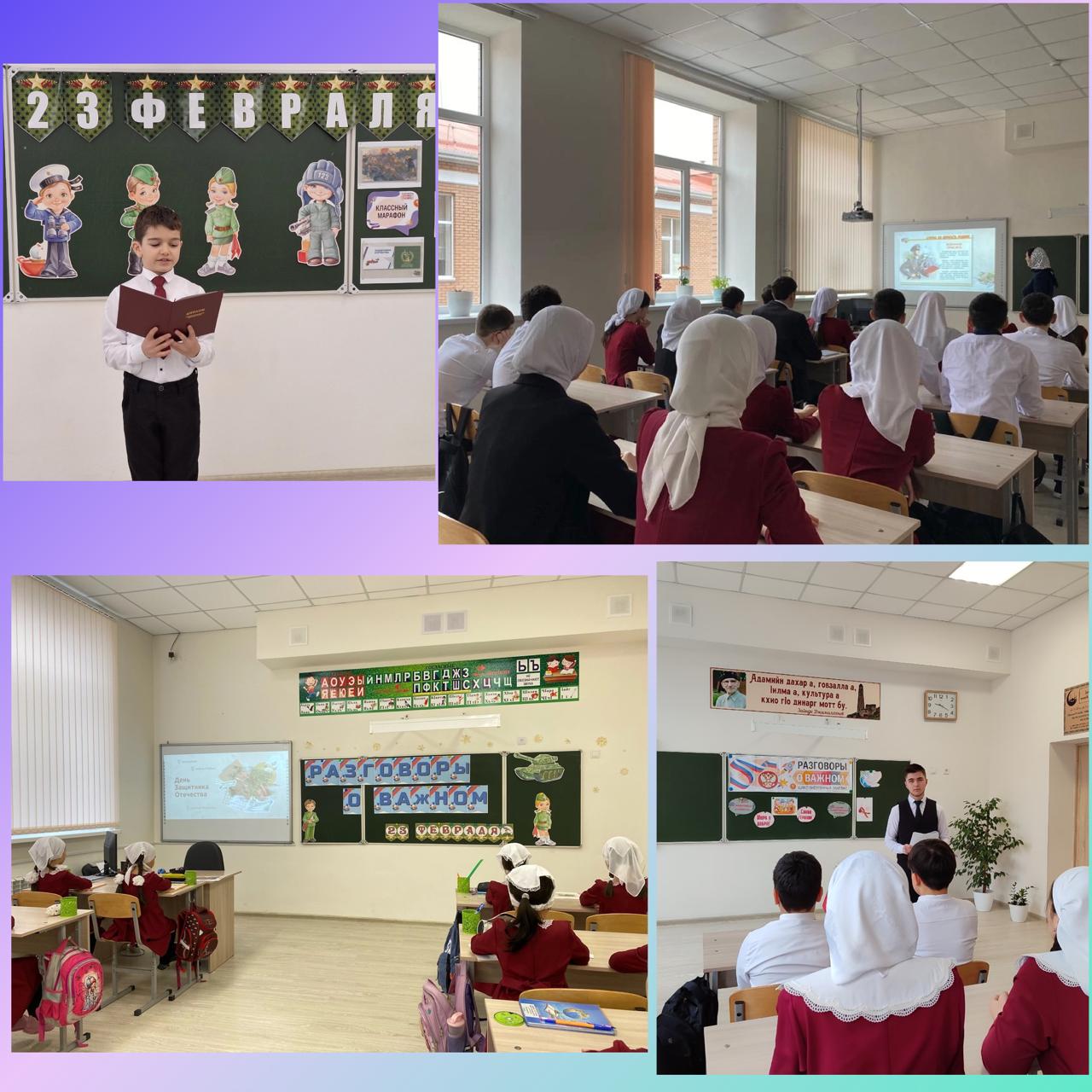 19.02.2024В этот понедельник, 19 февраля, у гимназистов 1–11 классов прошел разговор по теме «День защитника Отечества». Цели занятия: формирование понятия «защитник Отечества», формирование уважения к защитникам Отечества; формирование ответственного отношения к службе в армии как обязанности гражданина Российской Федерации.Формирующиеся ценности: любовь к Родине, служение Отечеству, сохранение исторической памяти.День защитника Отечества – всенародный праздник, в котором воплощены чувства уважения наших граждан к своим доблестным защитникам, гордости за всех, кто служил и служит в армии и на флоте, признания их героических заслуг перед Родиной в отстаивании её национальных интересов, суверенитета и независимости, всеми, кто по заветам предков «Отчизну мужеством прославил». Люди, искренне любящие свою Родину и трудящиеся на её благо – являются защитниками Отечества.Классные руководители познакомили детей и со знаменательными датами текущей недели