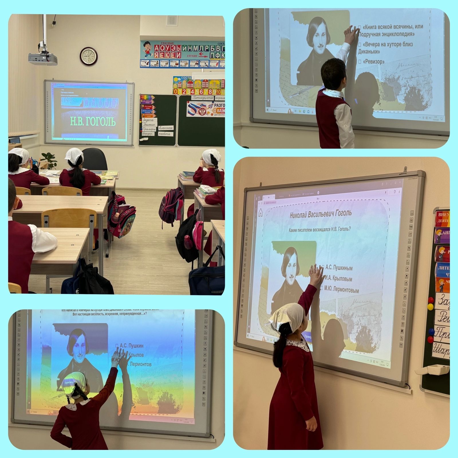 15.04.202415 апреля прошло внеурочное занятие из цикла «Разговоры о важном», посвященное жизни и творчеству Николая Васильевича Гоголя. Николай Васильевич Гоголь – один из самых ярких представителей русской литературы XIX века. Образы и сюжеты из его рассказов мы запоминаем на всю жизнь, настолько они необычные и яркие. Цель занятий: познакомить обучающихся с фрагментами биографии Н.В. Гоголя, показать многогранность личности писателя и его жизненные интересы, формировать уважительное отношение и интерес к людям, внёсшим большой вклад в развитие культуры России; способствовать расширению общекультурного кругозора учащихся. Ребята посмотрели видеоролик о детстве писателя, как происходило становление юного гимназиста как писателя и как рано у него проявилось стремление к литературному творчеству. Николай Васильевич Гоголь любил и ценил русский язык. Его произведения отличаются оригинальностью и остроумием, а также глубоким пониманием человеческой природы. Н.В. Гоголь создал образы, которые стали символами русской литературы.