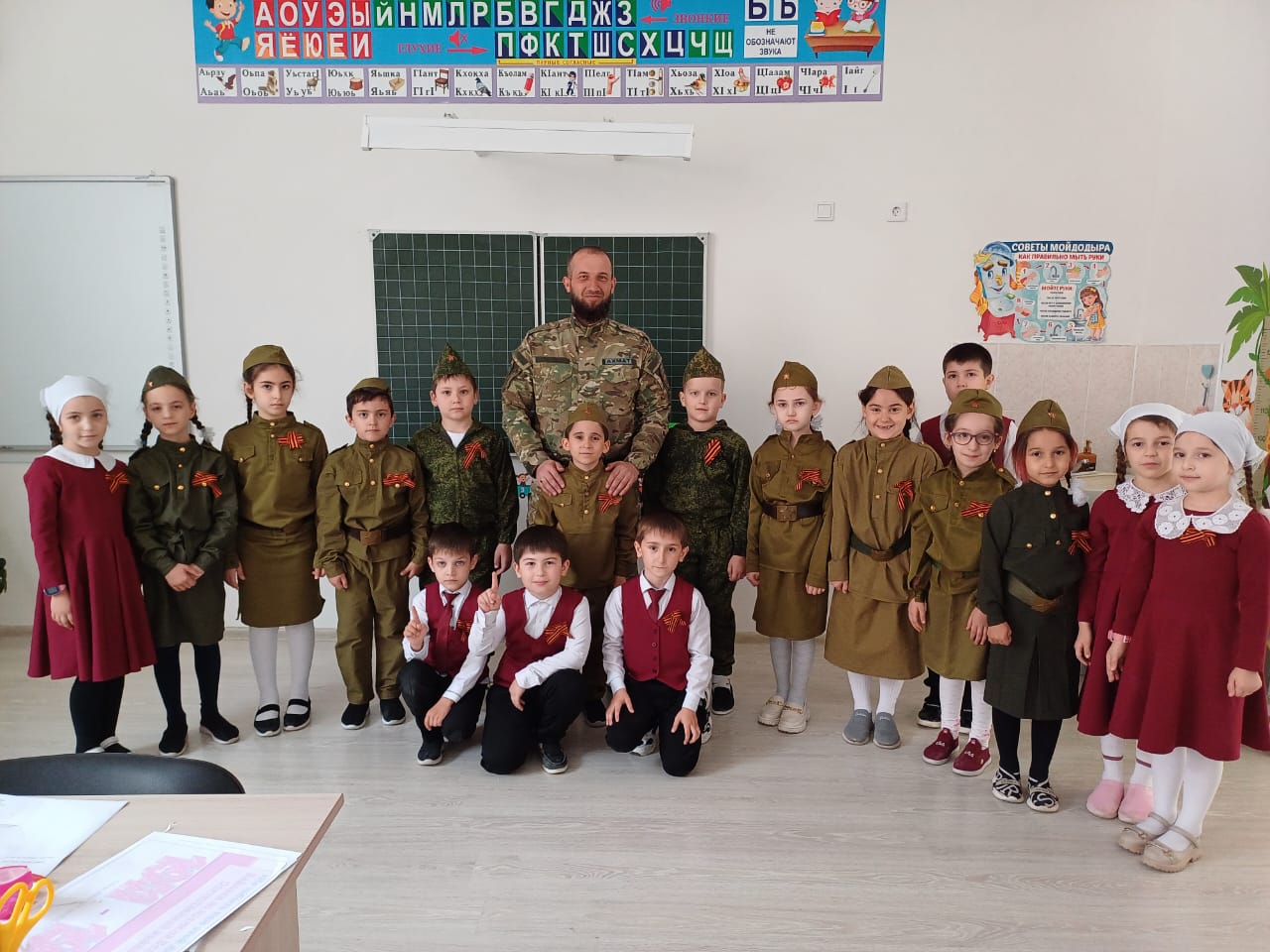 08.05.2024Для обучающихся 1А класса (кл. руководитель Халмурзаева Т.С.) был проведён Урок мужества с приглашением участника СВО, который рассказал о мужестве и героизме сослуживцев, о патриотическом духе и поддержке со стороны россиян. В заключение урока он пожелал ребятам мира, добра, хорошей учебы, ответственного отношения к делам и поступкам.