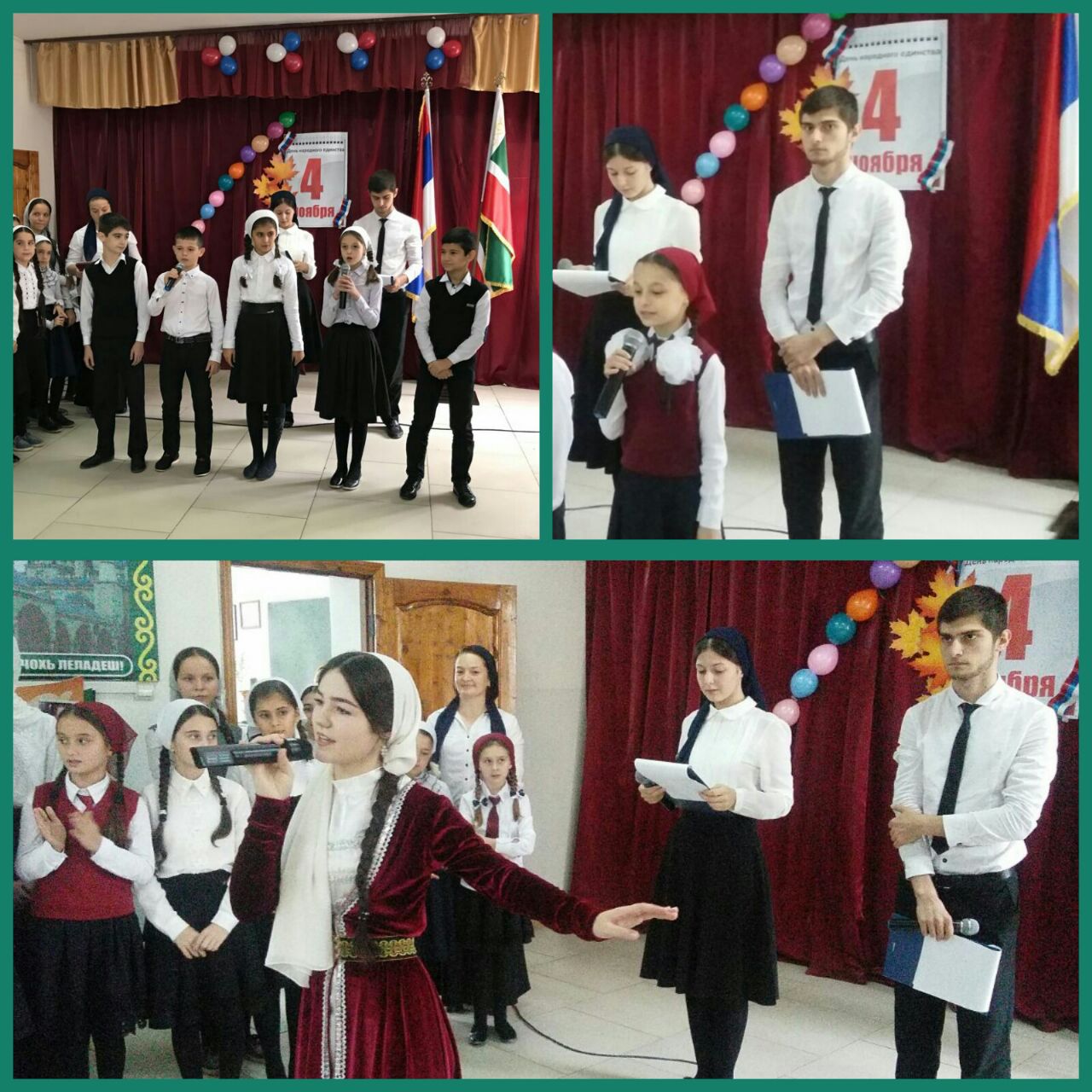 28 октября состоялась общешкольная линейка «Россия – страна единства и согласия». Торжественное мероприятие началось с исполнения гимна РФ. Далее директор гимназии Султаханов И.Ц. поздравил всех присутствующих с Днем народного единства. В своем выступлении он сказал: «И сегодня российскому обществу нужно помнить героические уроки прошлого. Честь, сила характера, беззаветная любовь к Родине, стремление сделать ее богаче и краше – эти идеи должны объединить всех граждан страны во благо России». Заместитель директора по ВР Мальцагова М.С. так же отметила важность единения народа в сложных политических условиях современности. В ходе торжества прозвучали стихи и песни о Родине, о дружбе. Особенно всем понравилась песня «Моя Россия» (хоровое исполнение учащихся 4 -10кл).