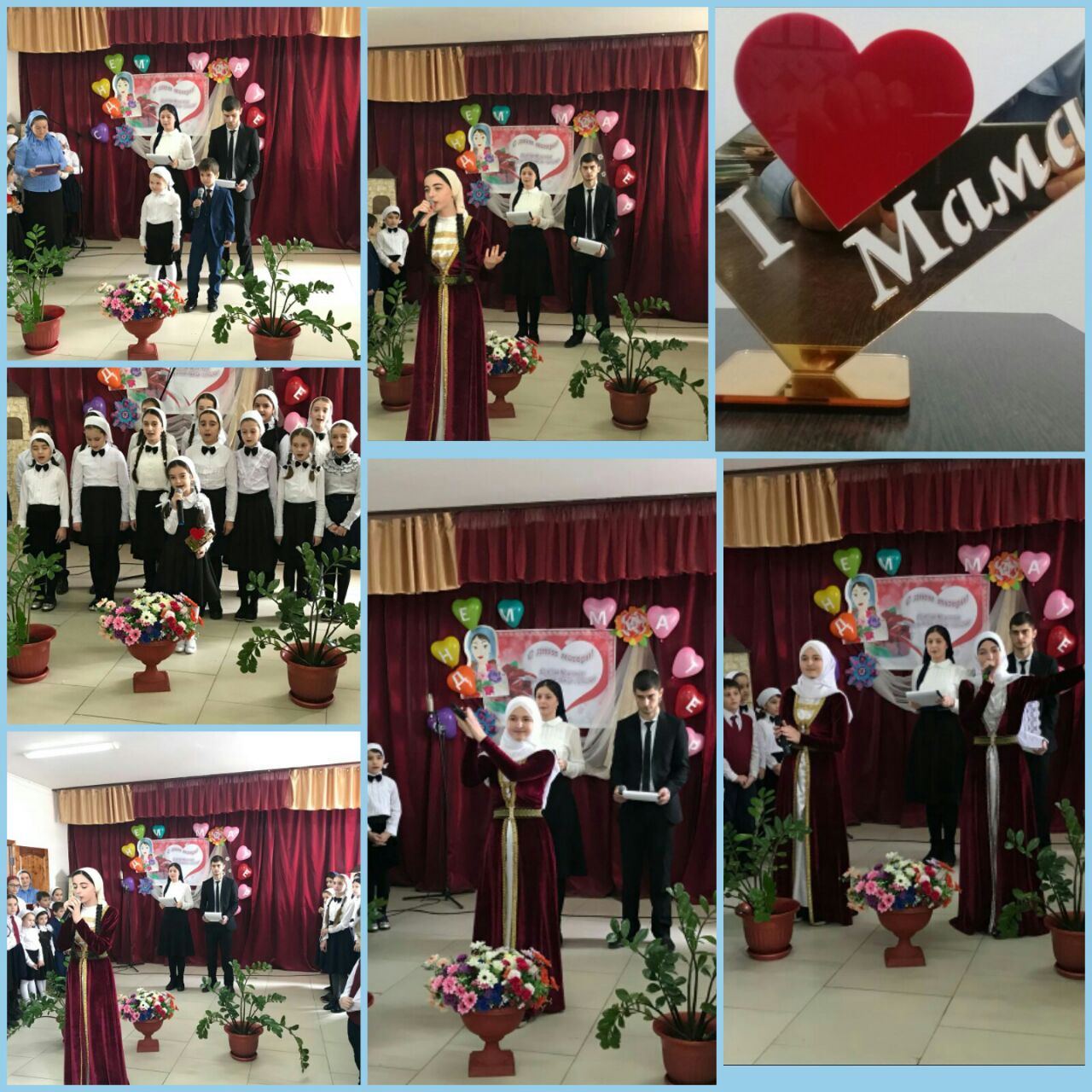 - Среди обучающихся 5-8 классов зав. кафедрой русского языка и литературы Бораевой Н.В. был проведен конкурс сочинений на тему: «Моя мама лучшая в мире». Каждая работа была по своему хороша: ребята описывали свои чувства, вспоминали различные ситуации, связанные с мамами. Подводя итоги конкурса сочинений ко Дню матери, можно сказать как множество нежных, искренних и тёплых слов написали ребята в адрес своих мам на страницах сочинений. В каждой строчке - безмерная детская любовь к близкому человеку. Победители: 1 место – Дениева Х. (5-В класс) 2 место – Магамадова А. (8 - Акласс) 3 место – Шамсутдинова Х.(8-Б класс) - Во всех классах проведены беседы, классные часы, посвященные Дню матери. Классные руководители Юсупова М.Х.( 1-Б кл.), Дакуева З.М. (2-Г кл.), Зелимханова Т.Х. (4-Б кл.), Бугаева И.С-А.(4 В кл.), Музаева З.А. (5-А кл.), Бораева Н.В. (8-Бкл.) провели открытые классные мероприятия с приглашением мам и бабушек детей. В начальных классах в конце мероприятия ребята дарили мамам и бабушкам открытки, сделанные своими руками. По содержанию все мероприятия соответствовали воспитательным задачам и возрастным особенностям: подбор текстов стихотворений, конкурсов, исполнение песни, сценки. - Не менее торжественно, 28 ноября прошел общешкольный праздник для мам: «Тепло сердец для наших любимых мам». Наши учащиеся любят поздравлять своих мам, готовят для них подарки, сюрпризы и праздничный концерт. Вот и на этот раз гимназисты с особой трогательностью и любовью преподнесли поздравления в стихах и песнях для самого дорогого и близкого им человека. Все проведенные мероприятия носили воспитательный характер, способствовали созданию благоприятной атмосферы, сплочению коллективов ребят, учителей и родителей.