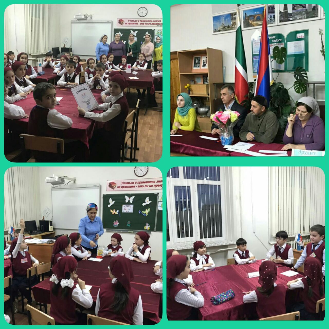 21.11.2017Зав.кафедрой нач.кл. Халмурзаева Т.С. 18 ноября среди обучающихся 3-х классов провела интеллектуальную игру "Юный эрудит".По итогам игры победила команда "Улыбка" 3-Б кл.(кл.рук.Халмурзаева Т.С.), 2 место заняла команда"Радуга" (кл. рук. Элиханова А.А.) и 3 место - команда "Орлы" 3-В кл.(кл.рук.Хажмурзаева З.Х.). Команды награждены грамотами гимназии.