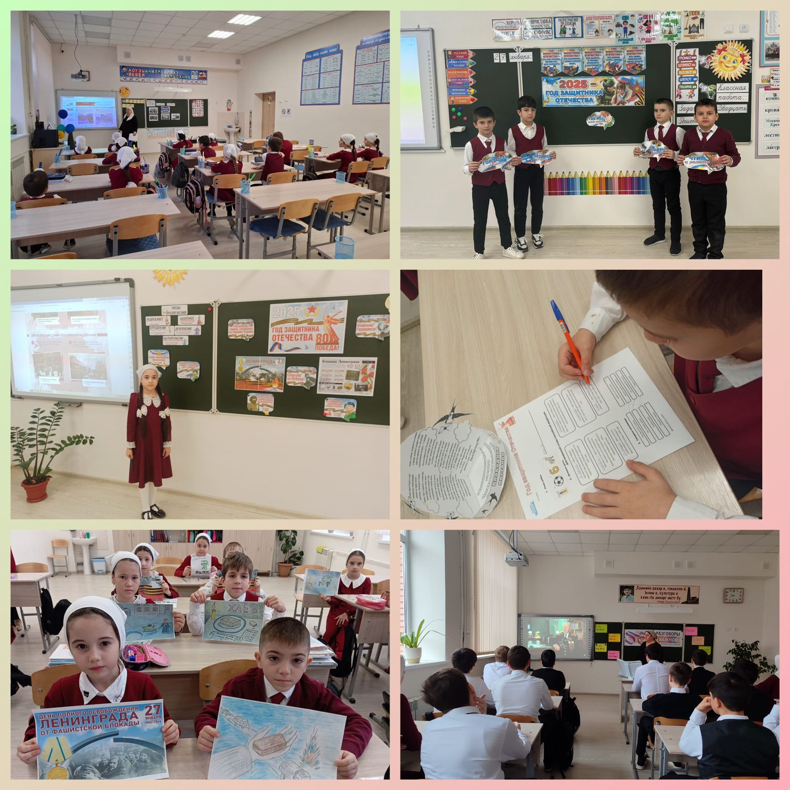 27 января очередное внеурочное занятие из цикла «Разговоры о важном» было посвящено празднованию в нашей стране Года Защитника Отечества, установленного в честь празднования 80-летия Победы в Великой Отечественной войне. Цели занятия: развитие у обучающихся представлений о роли защитников Отечества в сохранении независимости и единства страны, понимания необходимости сохранения исторической памяти и преемственности поколений, защиты общенациональных интересов и ценностей. Особой строкой занятие прошло в день полного освобождения Ленинграда от блокады. История этого дня вдохновляет и напоминает о значении мужества, единства и любви к Родине. Ребятам напомнили о традициях празднования дней воинской славы России, великих сражениях прошлого, определивших судьбу нашей страны, и о людях, которые своими усилиями приближали победу.
