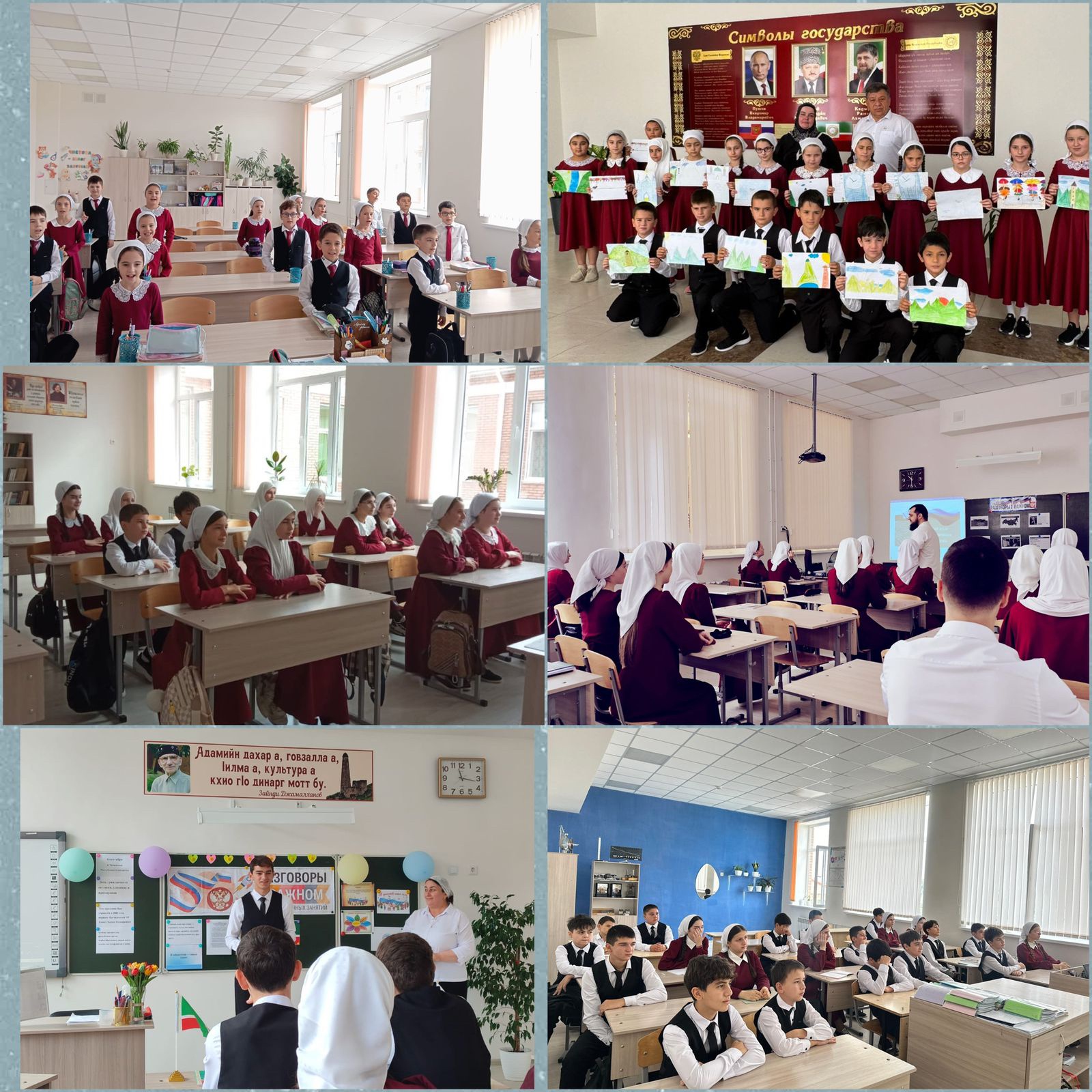 На внеурочном занятии «Разговоры о важном» обучающиеся с педагогами погрузились в увлекательную тему «Русский язык в эпоху цифровых технологий». Ребята вместе с учителями рассуждали о богатстве русского языка, о важности грамотности в жизни людей и общества. В рамках регионального компонента на занятии подразумевался акцент на уникальности родного региона, его истории и культуре. Особое внимание было уделено замечательному празднику для всего народа Дню Республики. Педагоги рассказали учащимся историю возникновения праздника, повторили с ними государственные символы Чеченской Республики – герб, флаг и гимн. Рассказывая о значимости праздника, учителя отметили роль Ахмата-Хаджи Кадырова, который ценой своей жизни остановил войну и вывел Чеченскую Республику на путь мира и созидания.