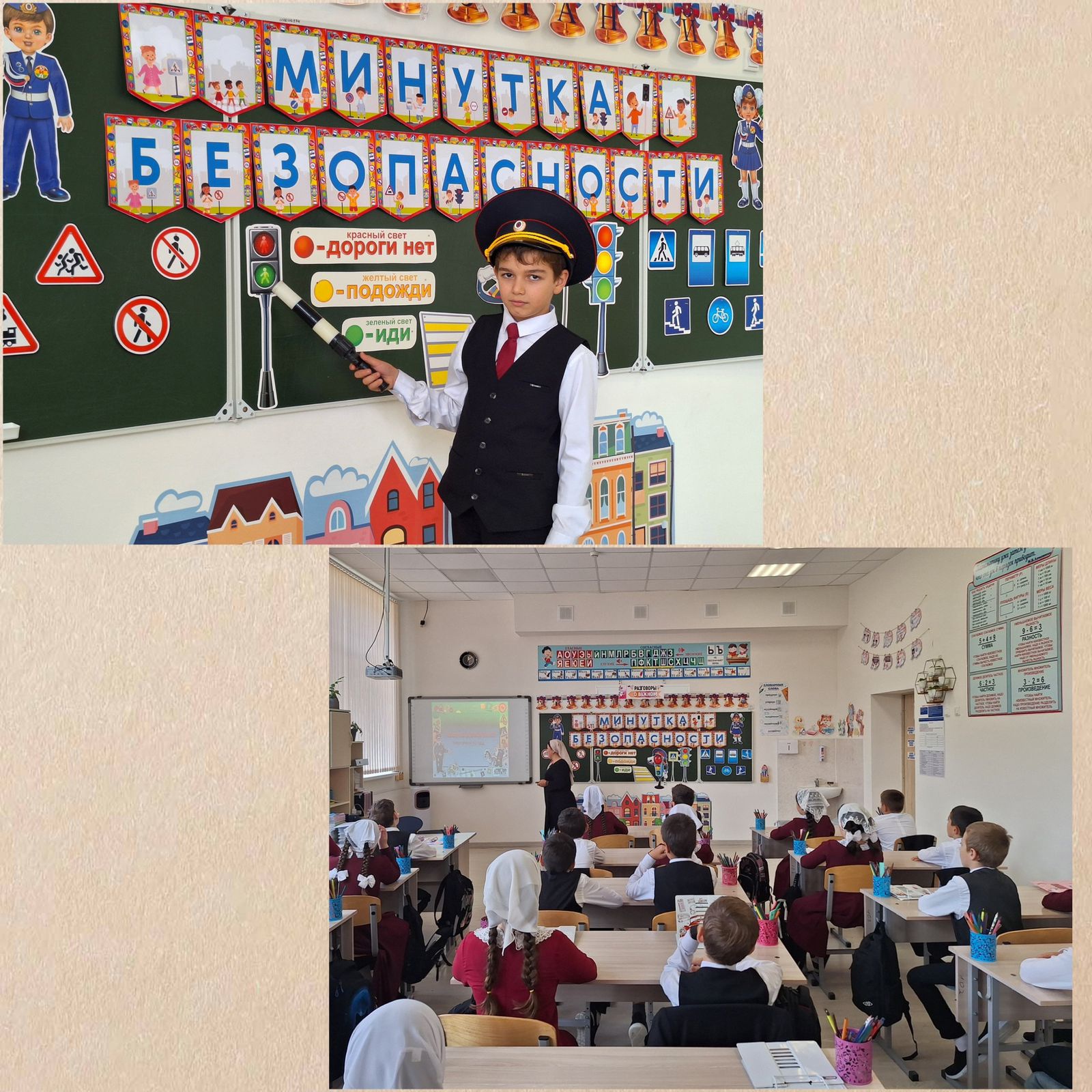 13.09.2025г. в 4в классе (кл. рук. Бугаева И.С-А.) был проведён классный час на тему «Минутка безопасности». Ребята повторили правила передвижения пешеходов, а также вспомнили дорожные знаки. Учащиеся закрепляли знания ПДД в игровой деятельности, учились правильно вести себя на улице, повторяли дорожные знаки. В классе уже есть своя коллекция знаков ДД, свой светофор. Ребята регулярно повторяют и проигрывают правила дорожного движения. Занятие завершилось викториной по ПДД.