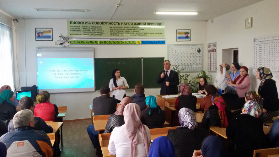 Классные руководители двух выпускных классов Бисаева А.Г. и Абаева З.С. проанализировали успеваемость учащихся за прошедшие три четверти. Рассказали родителям о реальном уровне знаний каждого ученика на текущий момент, о подготовке домашних заданий, о самостоятельной работе с КИМами, об отношении учеников к учебной работе.