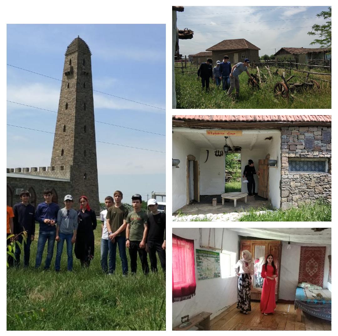 Экскурсия в архитектурно-этнографический музей "Шира-юрт", сконструированный под средневековый чеченский аул, на окраине с.Герменчук Шалинского района. 8 "Б" класс /Бораева Н.В./