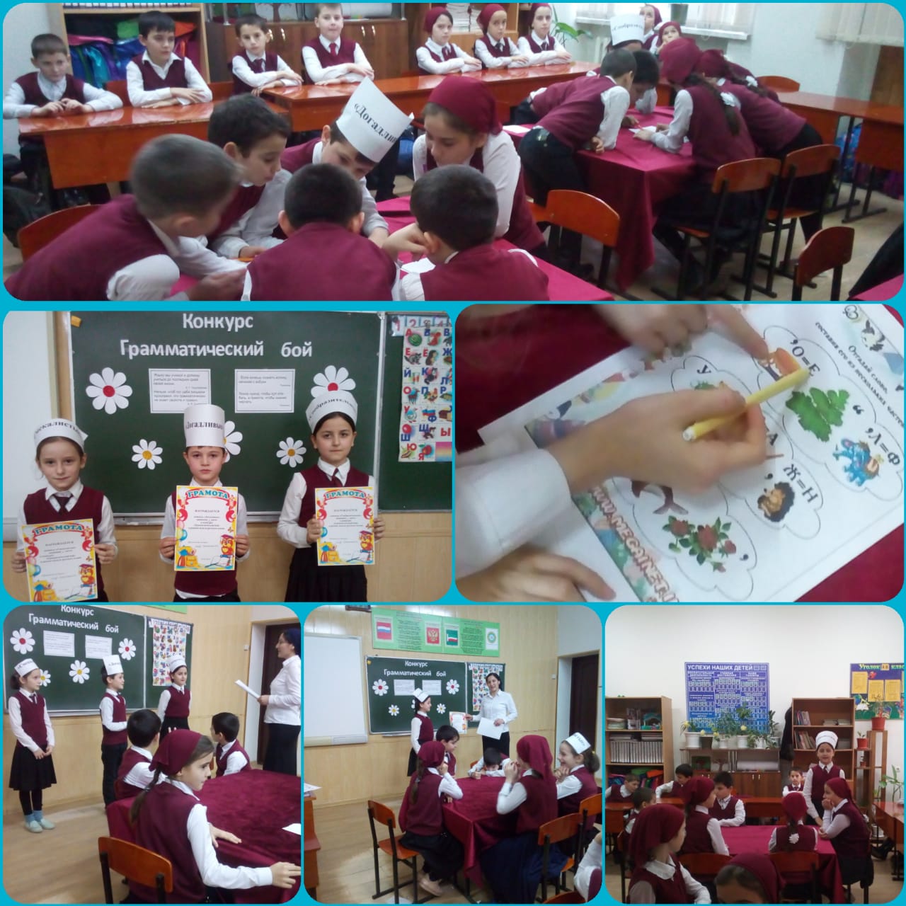 22 января в рамках Недели русского языка в 4 «В» классе классный руководитель Хажмурзаева Зарета Хасановна провела конкурс «Грамматический бой». Ребята были поделены на три команды: «Смекалистые», «Догадливые» и «Сообразительные».