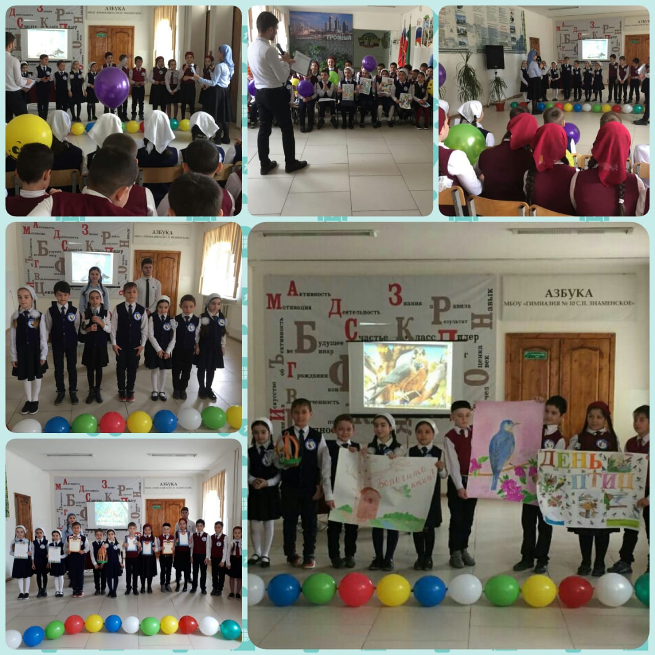 По итогам познавательного конкурса за хорошие знания о птицах, об их повадках ребята награждены грамотами. В номинации «Знатоки птиц»: 1 место - Мальцагова Раяна (3 «Г» кл.), 2 место поделили Дикаева Камиля (3 «А») и Хусиева Ясмина (3 «Г»), и на 3-м месте - Дахнаева Карина, Гичаев Хасан-Бек с 3 «А» класса.