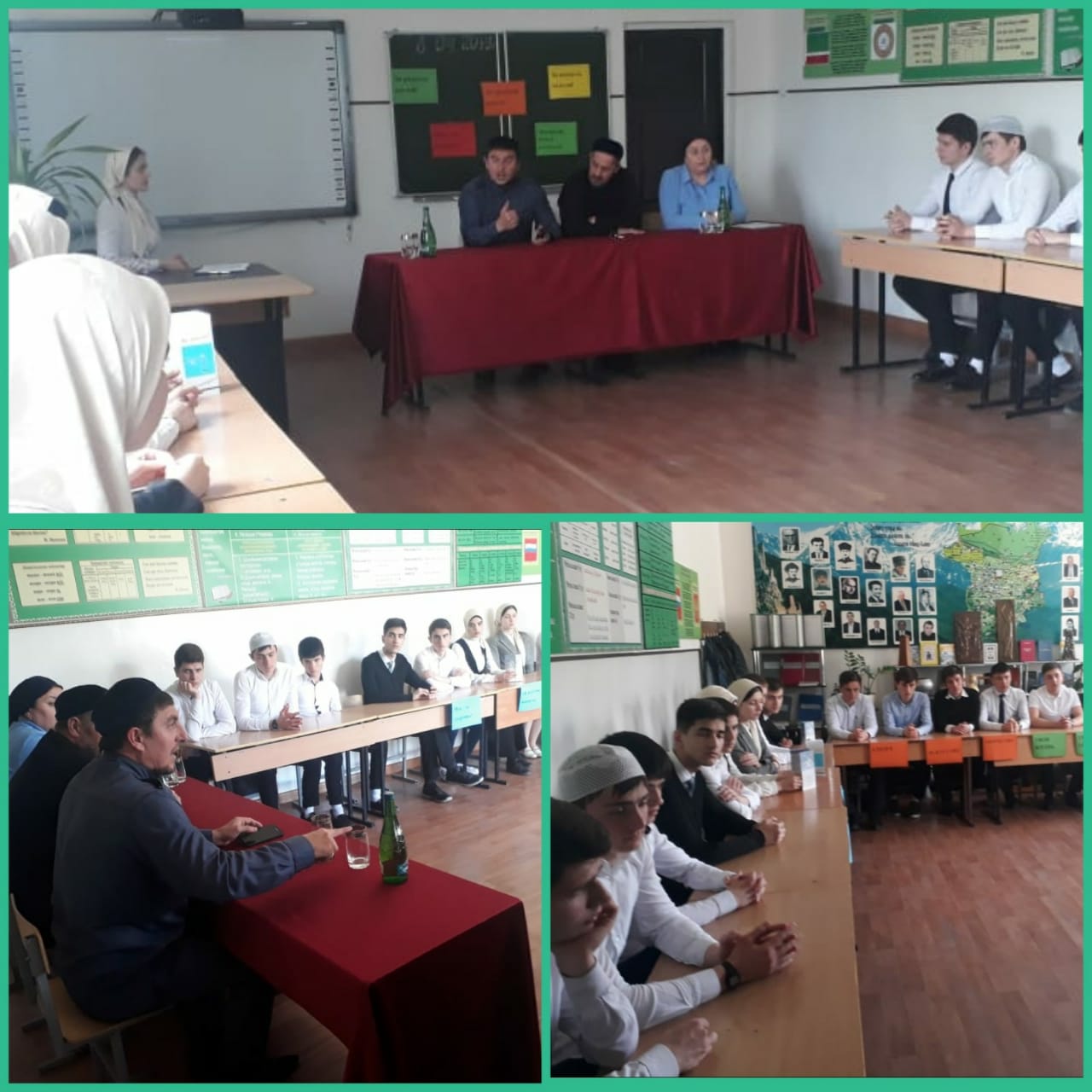 «Ислам – за здоровый образ жизни» под таким названием в МБОУ «Гимназия №10 с. п. Знаменское» 8 апреля 2019г. была организована встреча имама мечети с. п. Знаменское Берсаева Казбека Султановича с обучающимися 11-го класса. На мероприятии также присутствовали: туркх кадарийского тариката Ахьядов Имеран Мутушевич, заместитель директора по воспитательной работе Мальцагова Марха Салмановна и классный руководитель 11 класса Шахмаева Марха Ильясовна.