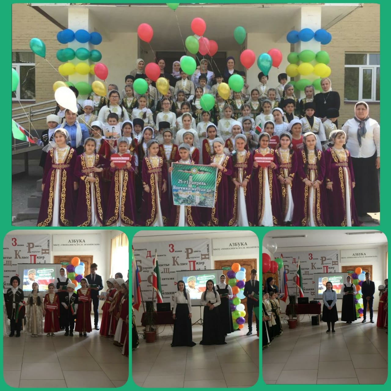 25.04.2019Машар ч1аг1беш, тхан ирс дебош,Маршада хьо, Къоман Де!Ненан мотт - и къоман кхане,Къоман хазна, дозалла! Массо а нохчийн мотт безаш а, буьйцуш а мел верг! Знаменски N10 йолчу гимназин хьехархойн а, дешархойн а ц1арах даггара декъалдо шу Нохчийн меттан Денца! Даггара лаьа шун ондда могашалла, зовкхе, ирсе дахар хуьлийла. Цу Везачу Дала беркат ма эшадойла шуна!